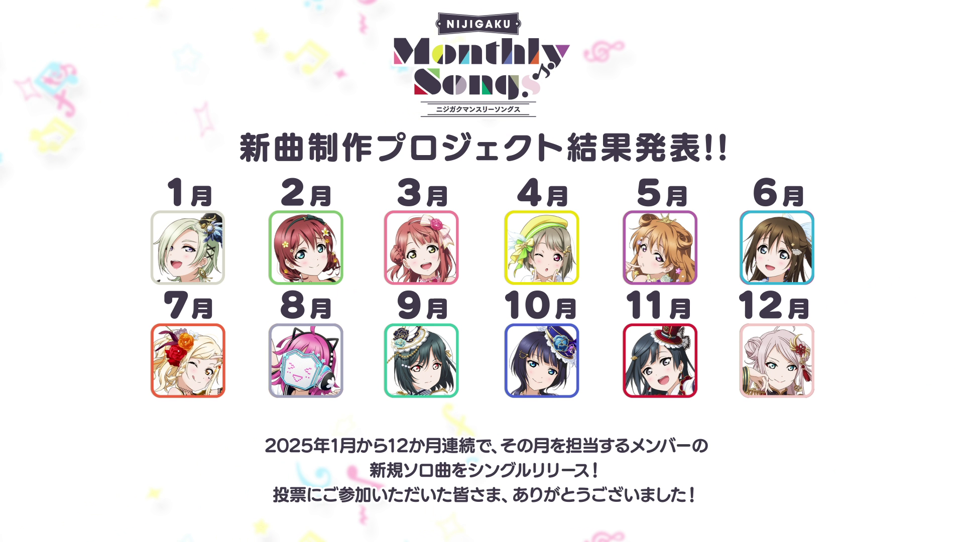 制作される楽曲は、2025年1月から12ヶ月連続でシングルとしてリリース予定!