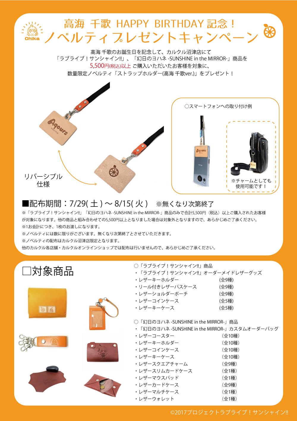 カルクルより高海 千歌バースデー記念ノベルティ配布のお知らせ