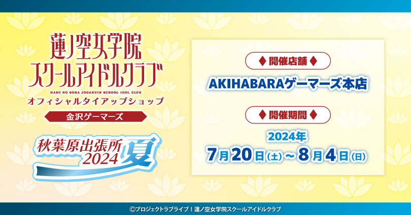 ゲーマーズより「ラブライブ!蓮ノ空女学院スクールアイドルクラブ」オフィシャルタイアップショップ金沢ゲーマーズ出張所2024夏開催のお知らせ